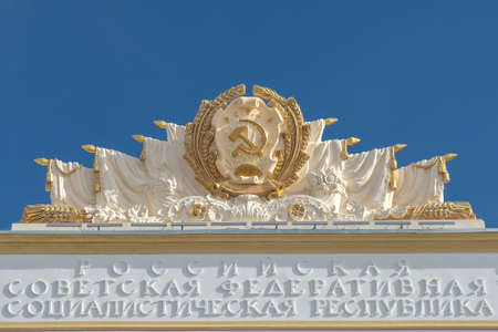 Moscow - March 09, 2019: Architecture of pavilions at the Exhibition of Achievements of the National Economy (VDNH) in Moscow.