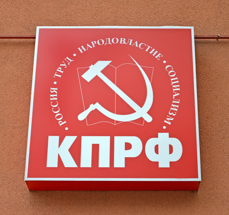 KALININGRAD, RUSSIA - MAY 09, 2021: A tablet with the inscription Communist Party and communist symbols on the wall of the building