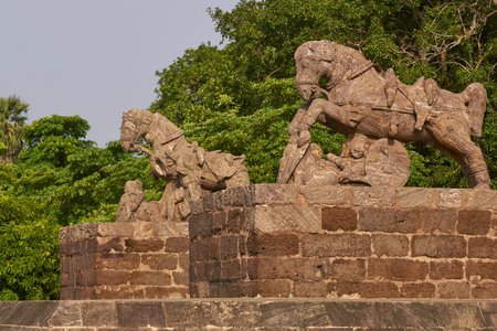 Statue of war horses at the ancient Surya Hindu Temple at Konark Orissa India. 13th Century AD