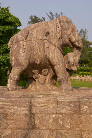 Statue of a war elephant at the ancient Surya Hindu Temple at Konark Orissa India. 13th Century AD