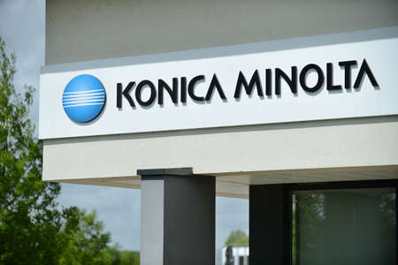 Ballerup, Denmark - September 10, 2017: Konica Minolta office building. Konica Minolta is a Japanese technology company. The company manufactures business and industrial imaging products