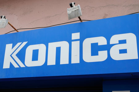 Bordeaux, Aquitaine France - 07 07 2021: Konica logo brand and text sign on entrance boutique of Japanese technology company