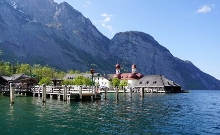 Panoramic view at the Port am Konigsee Lake in Bavarian Alps - Germany