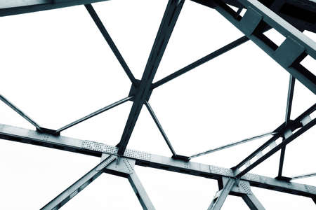 Steel structure of the bridge over the river, steel trusses, closeup of photo