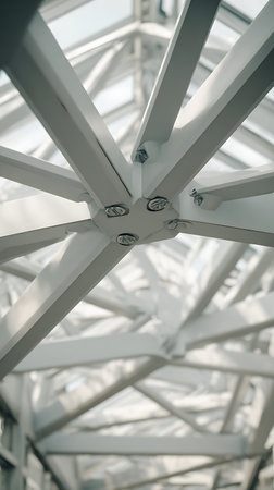 Abstract view of a steel framework highlighting the elegance of architectural design and robust engineering principles in a minimalist style.