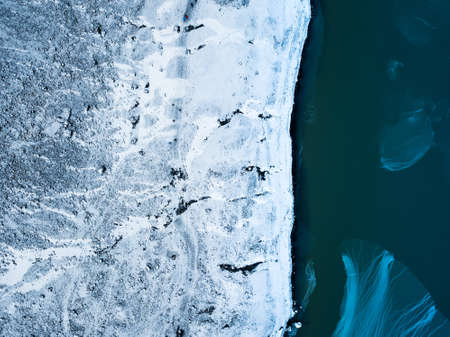 Icelandic winter landscape. Aerial view of Jokulsarlon glacier.
