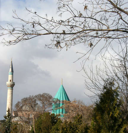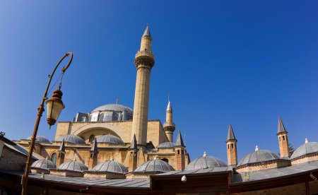 Mevlana tomb and Selimiye mosque at Konya, Turkey known also as mevlana kulliyesi or mevlana turbesi and Selimiye camii