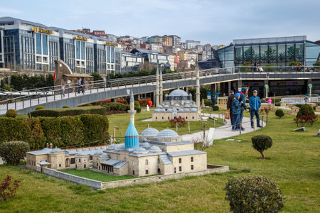 Istanbul, Turkey - March 23, 2019: Miniaturk is a miniature park in Istanbul, Turkey. The park contains 122 models. Panoramic view of Miniaturk