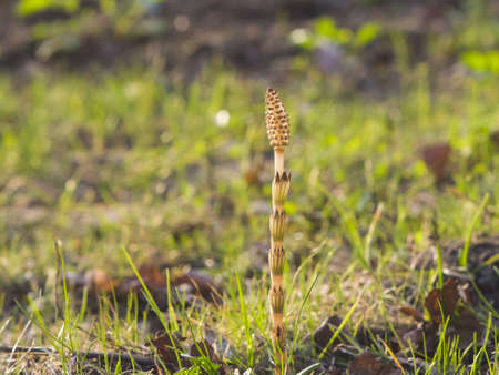 Shoot of horsetail on the sunny lawn