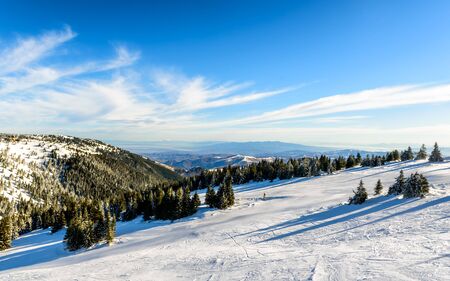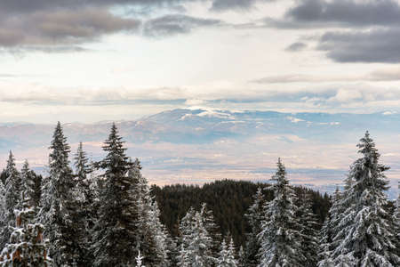 Aerial Winter panorama of Vitosha Mountain, Sofia City Region, Bulgaria
