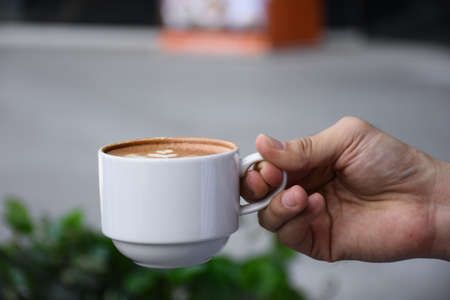 Hot milk coffee and soft froth in white ceramic cup