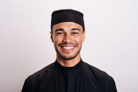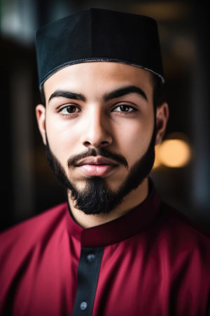 shot of a young muslim man looking proud, created with generative ai