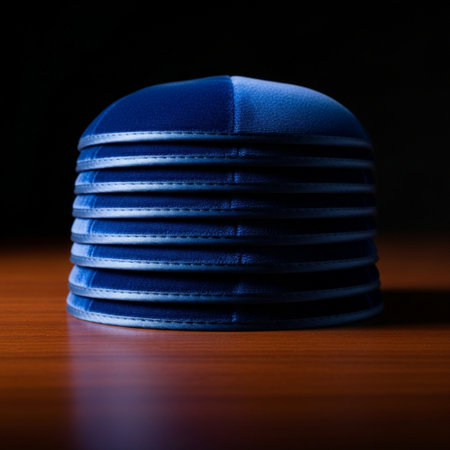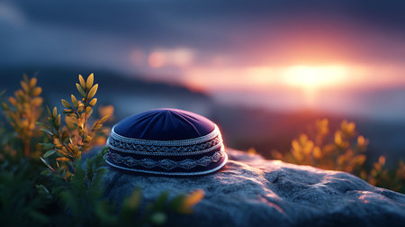 kippah placed gently on ancient stone with sunrise behind, concept of humility and peace. Generative AI