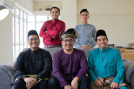 Eid Mubarak celebration concept, group photo of Malaysian wearing traditional clothes