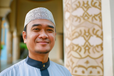 Asian man smile happily at Eid al-Fitr prayers