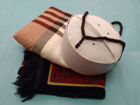 A prayer moslem equipment, ready pray to Allah, at home or mosque. Jakarta, Indonesia - 2020