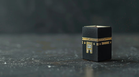 Sacred black cube structure in dimly lit space