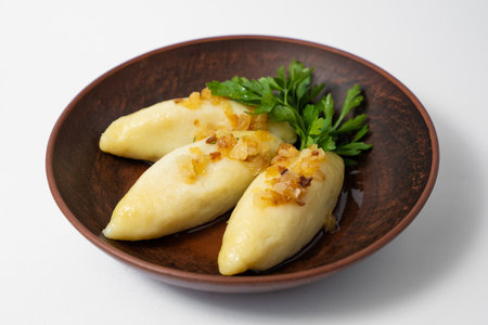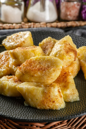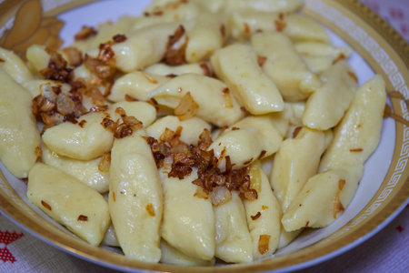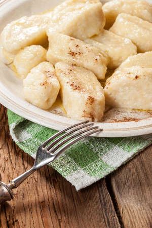 Closeup of traditional Polish potato dumplings served on plate