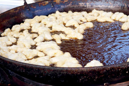 Deep-fried dough stick on the pan