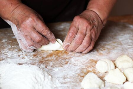 woman hands preparing sweets or donuts with traditional recipe at home