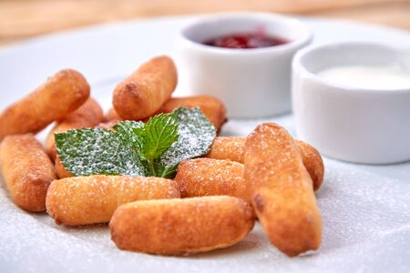 Cream cheese sticks with sauce