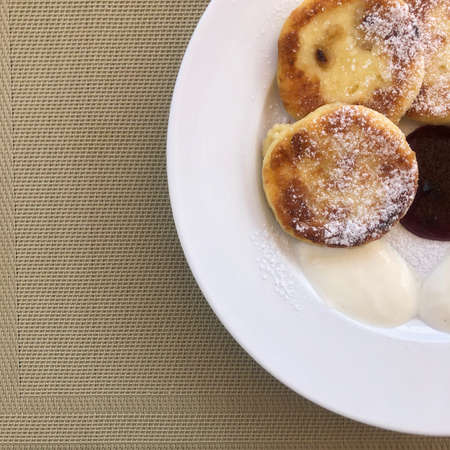 Cheese pancakes on a plate with jam