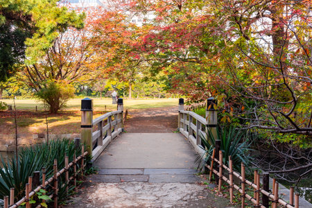 Bunkyo City,Tokyo,Japan on December6,2019:Togetsukyo Bride with autumn colors at Rikugien Garden.