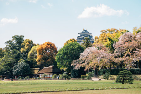 Okayama castle and Korakuen garden at spring in Japan