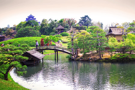 Okayama, JAPAN - April 17 Travellers are visiting in Koraku-en in Okayama, Japan on April 17, 2014 One of the Three Great Gardens of Japan garden