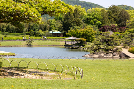 Okayama, Japan- 10 May 2024: Korakuen, Japanese garden located in Okayama. It is one of the Three Great Gardens of Japan