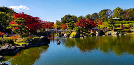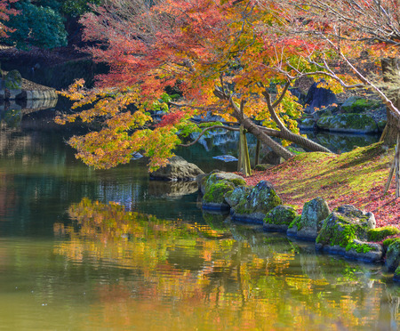 Japanese Autumn color of Korakuen garden in Okayama, Japan