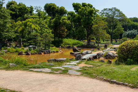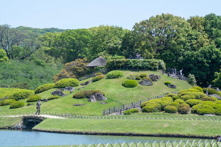 Okayama, Japan- 10 May 2024: Korakuen, Japanese garden located in Okayama. It is one of the Three Great Gardens of Japan