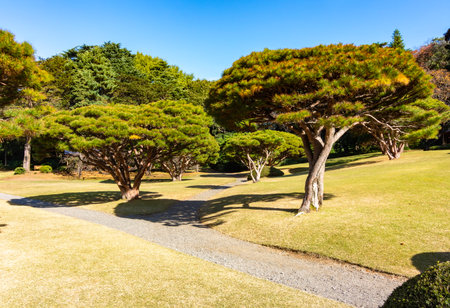 Pine trees in Shinjuku Gyoen garden, Tokyo, Japan