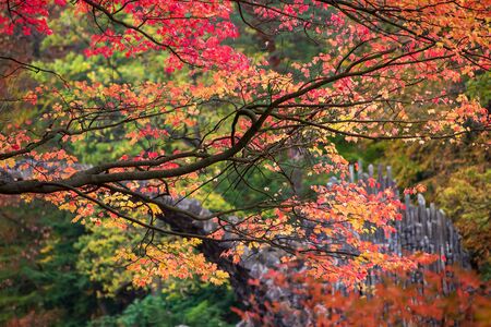 Nagato Gorge in autumn with beautiful autumn leaves and valley