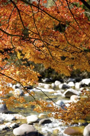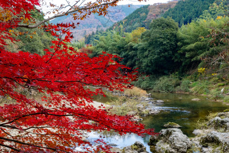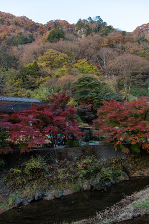 November 23,2018 - Mitake, Tokyo-Japan, The romatic autumn scenery on the Mitake Mountain, the maple is starting changing its leaf to red color. Many of Japanese come for camping and dating
