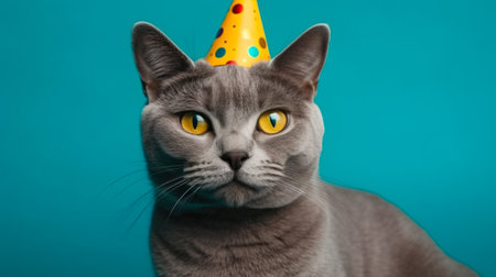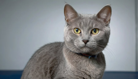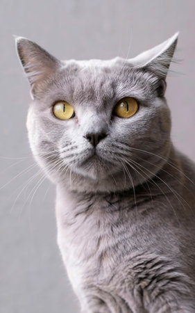 AI Generated. Beautiful british cat with yellow eyes on a gray background
