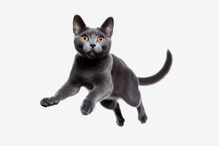 Jumping Moment, Korat Cat On White Background.