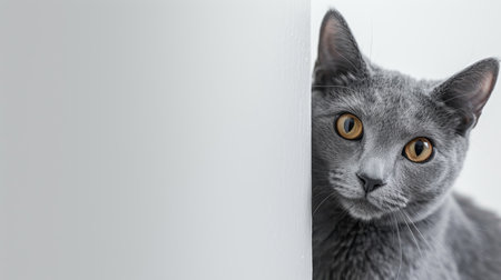 Russian blue cat peeking around corner