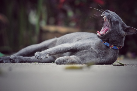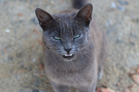 Tongue of a grey adult cat