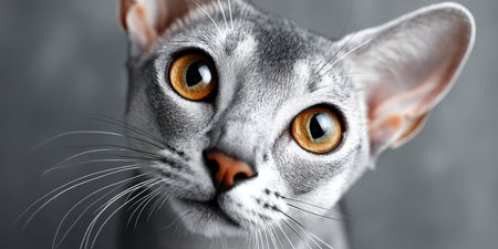 Captivating Singapura Cat Portrait A Close-Up of the Elegant Shorthair s Beauty on Gray Background