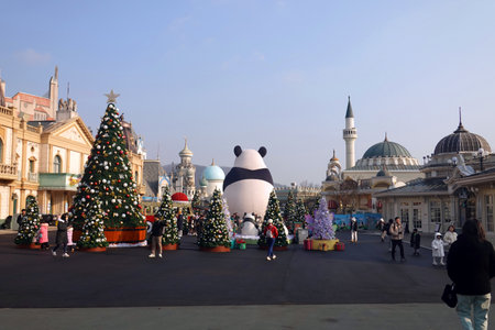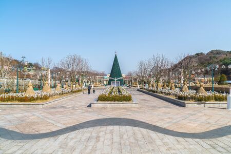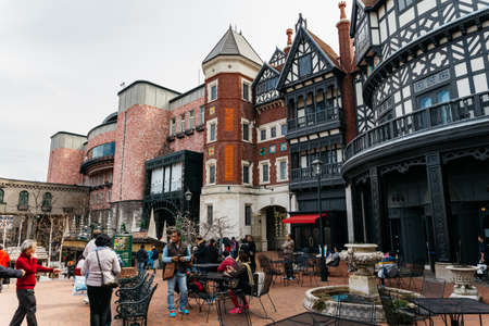 SOUTH KOREA - March 6: The Architecture and unidentified tourists are walking in Everland Resort, Yongin City, South Korea, on March 6, 2016