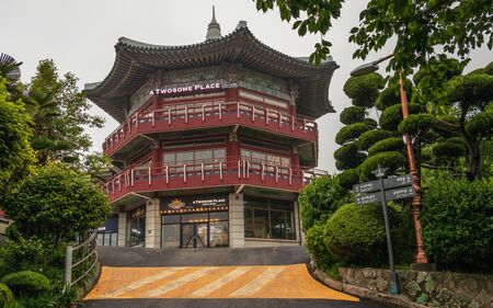 Gyeonggi, South Korea, April 22, 2019: The Architecture and tourists on holiday