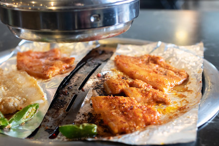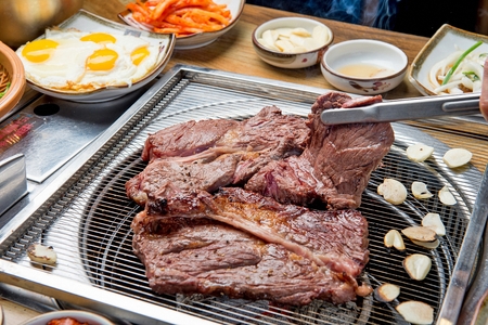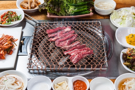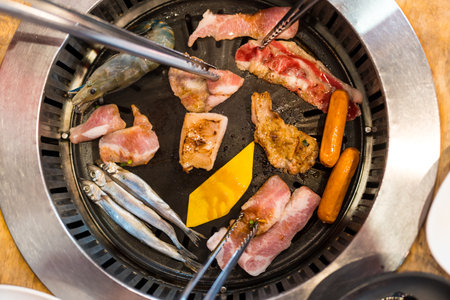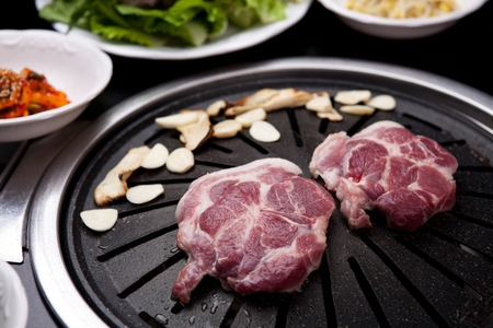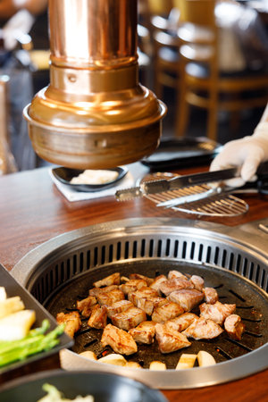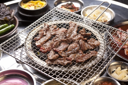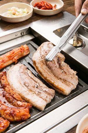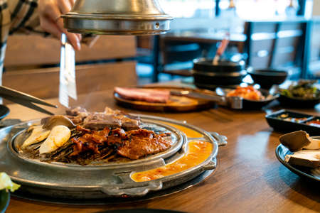 Korean barbecue - meat are being cooked on korean stove