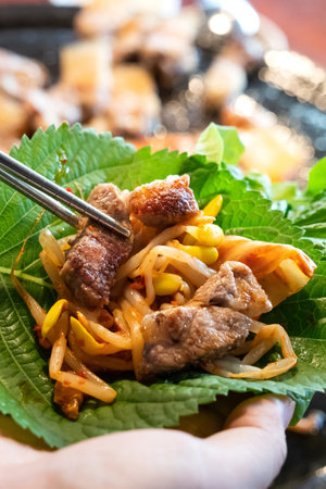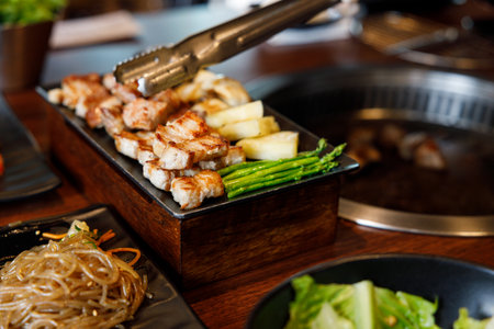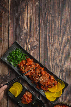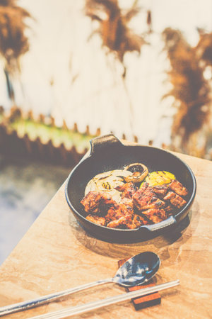 Korean traditional style grill BBQ pork. Selective focus.