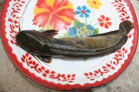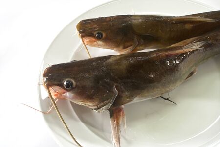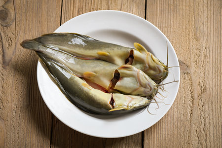 catfish on plate, fresh raw catfish freshwater fish, catfish for cooking food, fish on wooden in the kitchen