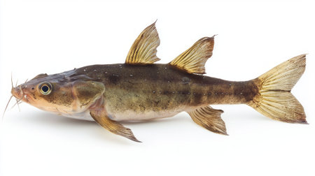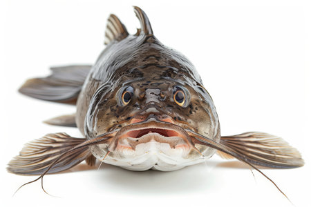 catfish belonging to the Siluriformes order is isolated on a white background showcasing its unique physical characteristics and form.