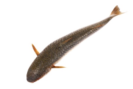 Misgurnus fossilis, European weatherfish. Object in front of white background, isolated.