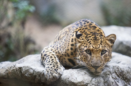 leopard ( Panthera pardus ) resting on floor
