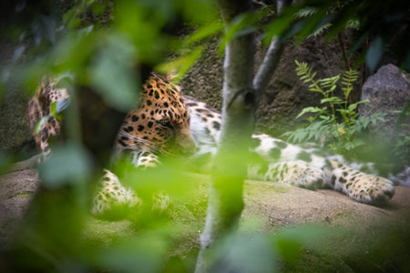 An Amur Leopard gets some rest on a rock.