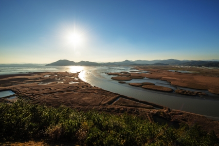 Panoramic view of Suncheonman Bay wetland at autumn in Suncheon, Korea